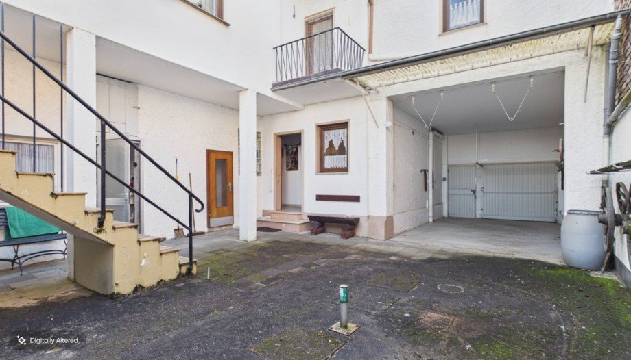 Der Zugang zum Haus erfolgt über den Innenhof, der gleichzeitig den zentralen Außenbereich des Anwesens bildet. Von hier aus sind neben dem Wohnhaus auch eine Außentoilette, ein Gewölbekeller, eine Waschküche mit Dusche sowie der Garten erreichbar. Ergänzt wird das Angebot durch zwei Gartenhäuser und eine Terrasse, die zusätzlichen Raum im Freien bieten.